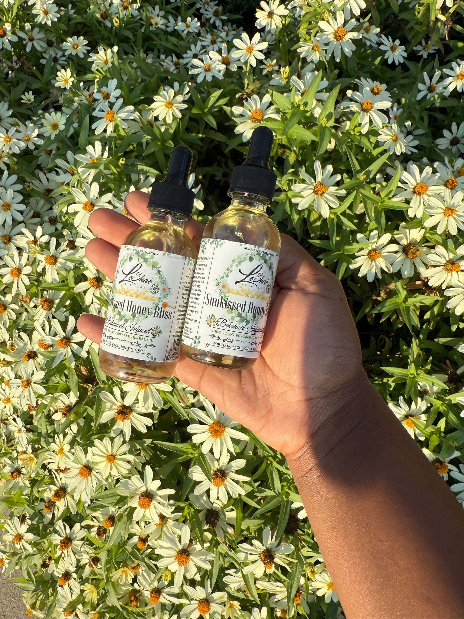 Herbal Sun-kissed Chamomile oil, hand made and hand poured to improve and moisturize the skin. This herbal infused oil is filled with florals such as calendula, chamomile, jasmine buds. and marigold. The chemistry of the body and oil helps fight against acne, lighten dark circles, prevent ingrown hairs, calm the body, and overall promotes healthier skin.